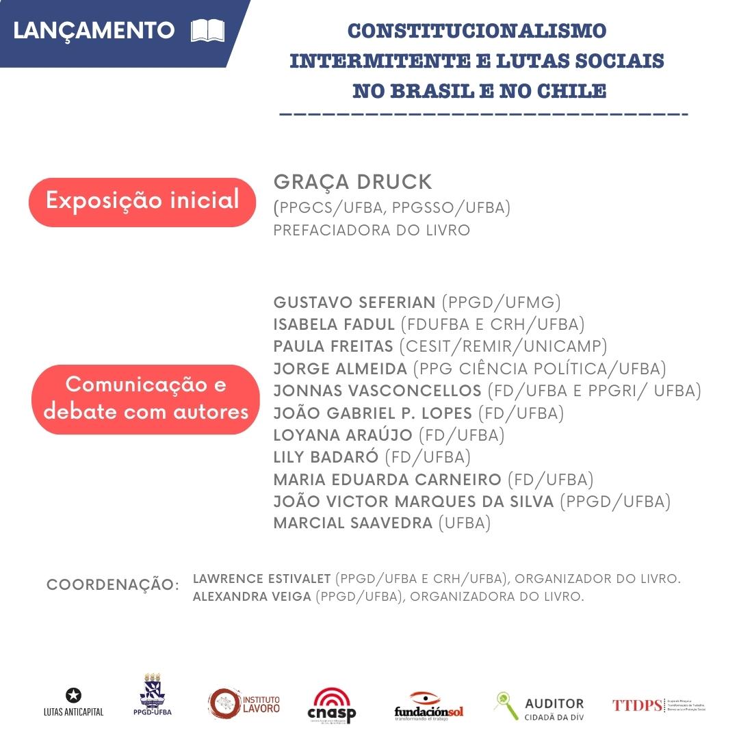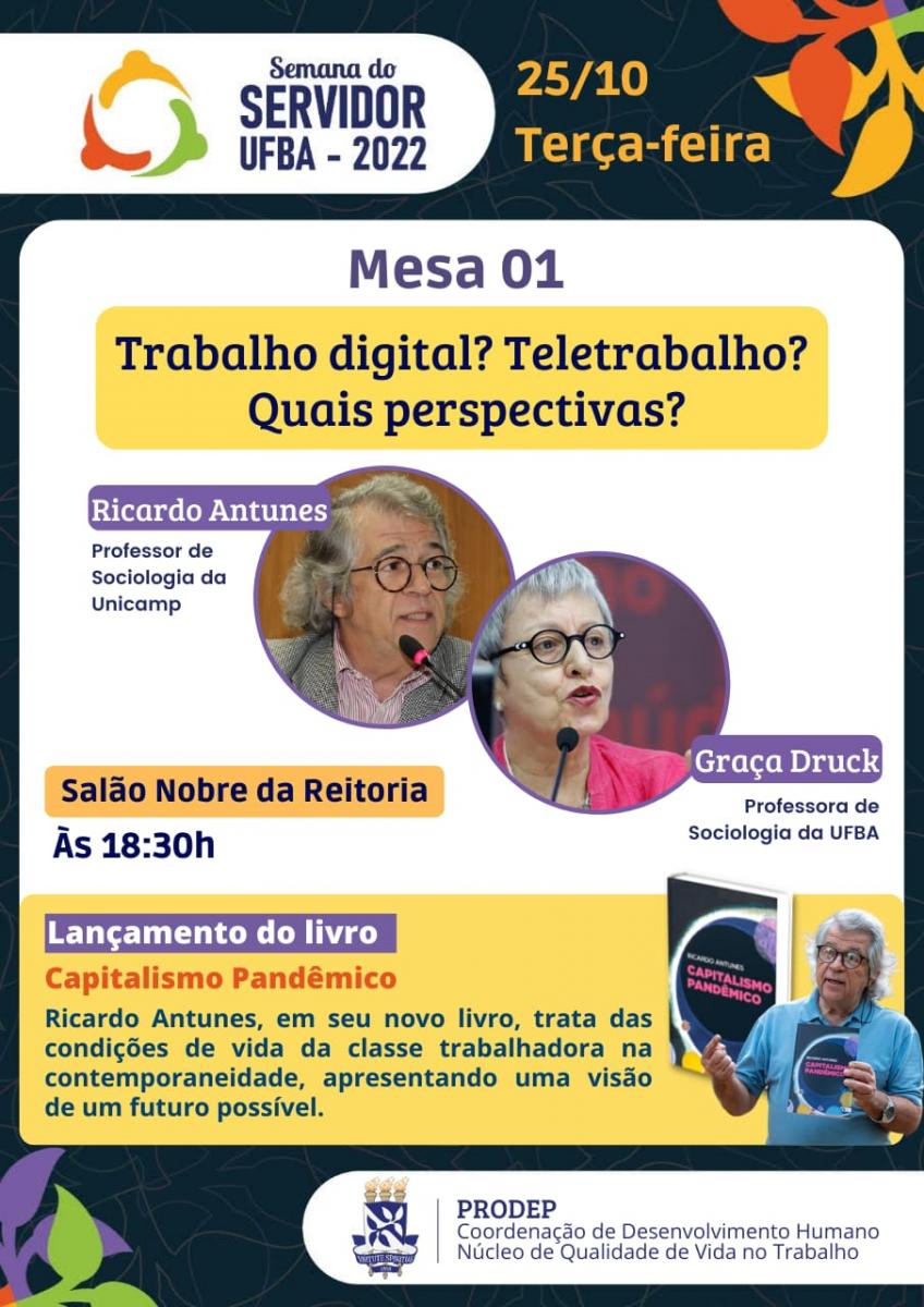 Graça Druck e Ricardo Antunes são considerados dois dos maiores sociólogos do Brasil, com elaborações e publicações relevantes no campo da teoria social e da sociologia do trabalho desde a década de 1980, com as publicações da tese “Terceirização: (Des)Fordizando a Fábrica – um estudo do complexo petroquímico da Bahia” (Druck, 1995), “A Rebeldia do Trabalho” (Antunes, 1988) e “Adeus ao Trabalho?” (Antunes, 1995), este último publicado publicado em diversos países, como Argentina, Venezuela, Colômbia, Espanha, Galícia, Itália, Inglaterra e Holanda. Lawrence Estivalet é professor de Direito do Trabalho da Faculdade de Direito da UFBA, vice-coordenador do CRH/UFBA e professor permanente do PPGD/UFBA (Mestrado e Doutorado).